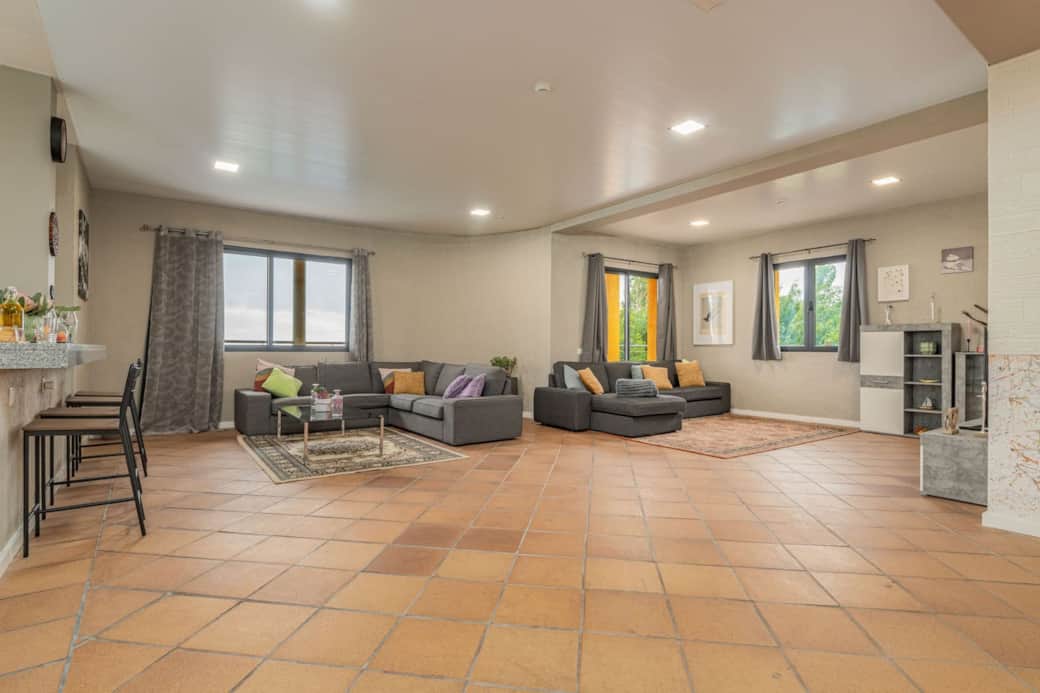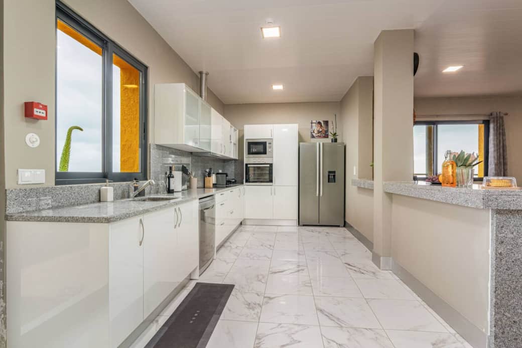 Main kitchen is fully equipped with all necessary appliances to cook a full meal and share with family/friends. Also, it has an island balcony to allow family and friends entertainment while cooking.